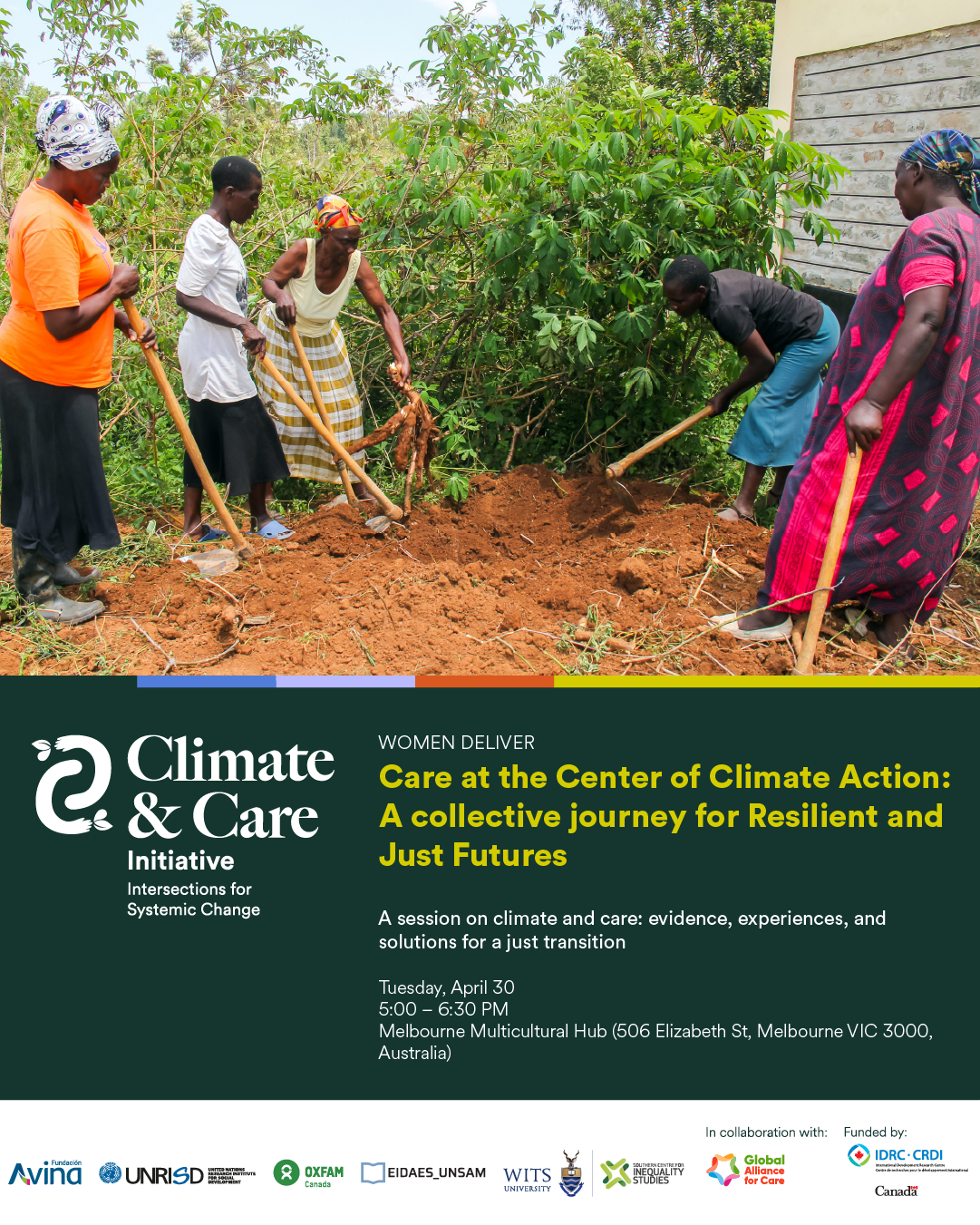 The event will also feature a visual exhibition showcasing experiences from the Global South supported by the Climate & Care Initiative Fund, highlighting how communities are collectively responding to the impacts of climate change through care-centered approaches.